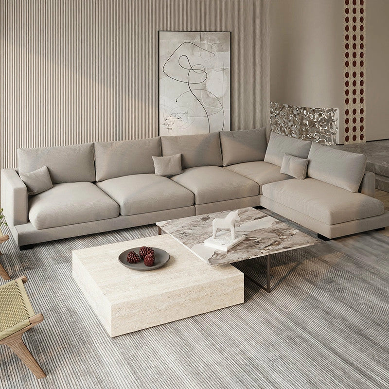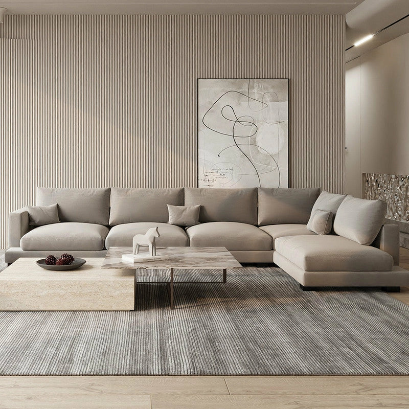 استسلم للرفاهية المطلقة مع هذه الأريكة المُتعددة الأجزاء، المُصممة لتوفر تجربة جلوس لا مثيل لها. تصميمها العصري ولونها العميق يجعلانها القطعة المركزية المثالية للمساحات الكبيرة والذوق الرفيع. صُممت الأريكة بعمق استثنائي لتتيح لك الاستلقاء والراحة التامة، مع سعة جلوس واسعة مثالية لاستقبال العائلة والأصدقاء. مغطاة بقماش ذي ملمس ناعم، مما يضيف بُعدًا بصريًا ويزيد من إحساس الفخامة. تتناغم هذه الأريكة بشكل رائع مع ديكورات الجدران، مثالية للمساحات المفتوحة، وتُعطي انطباعًا بالفخامة غير المتكلفة والذوق الرفيع.
