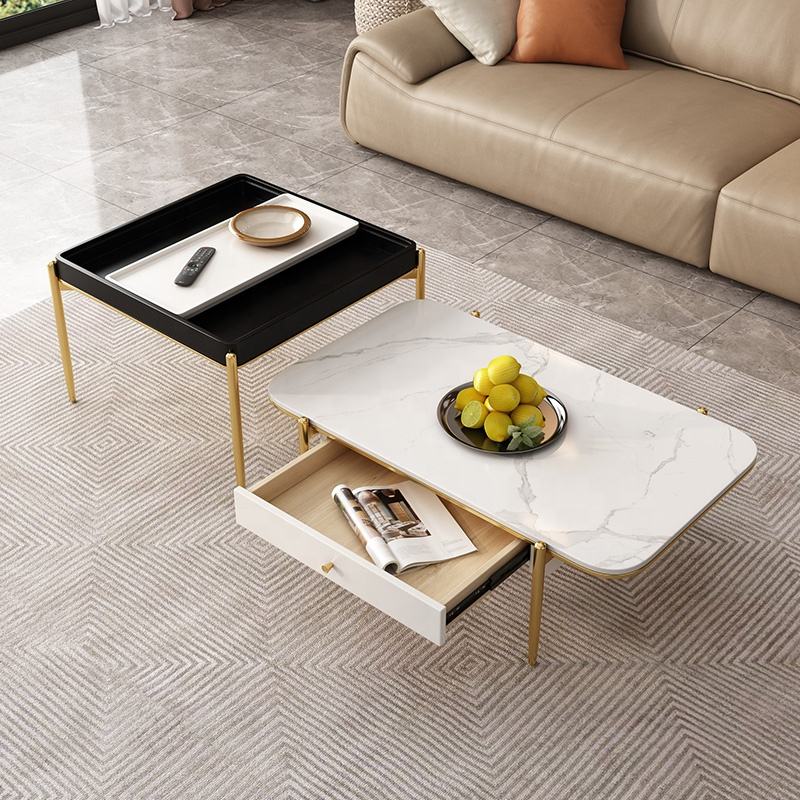 Elegant style meets unique, durable design in this metal coffee table. The marble-alternative surface and distinctive finish make it the perfect addition to your living room or reception room.