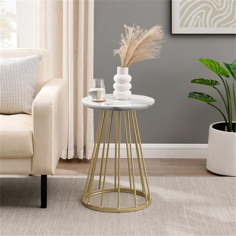 This metal cage- base table is a great addition to any contemporary-style home. The mixed-material look gives this table a unique and modern touch, while the attractive tabletop provides a stylish place to store magazines, remote controls, and home decor. With its versatile silhouette, this table fits perfectly into modern, urban, and contemporary homes. Pair this piece with matching cage-style furniture for a cohesive look.