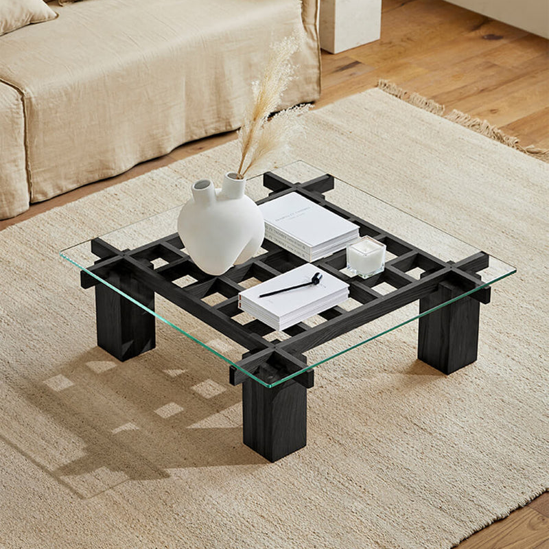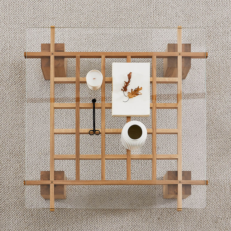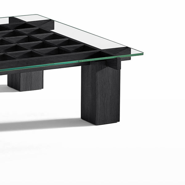 A luxurious coffee table that is an example of perfect balance. The table features a unique geometric design that can be mixed and matched with any furniture in your home, adding a touch of beauty and elegance. It is made of high-quality, fine wood and a high-quality glass surface.