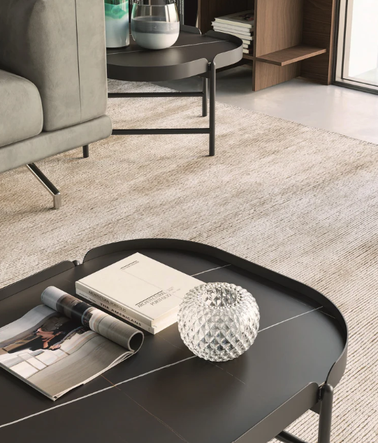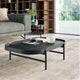An elegant coffee table crafted from high-quality materials, combining wood and a marble-like finish, with a marble-like top for a luxurious look and a modern touch. The table's design blends practical beauty with refined taste, making it an ideal addition to any living room looking to create a modern and elegant feel.