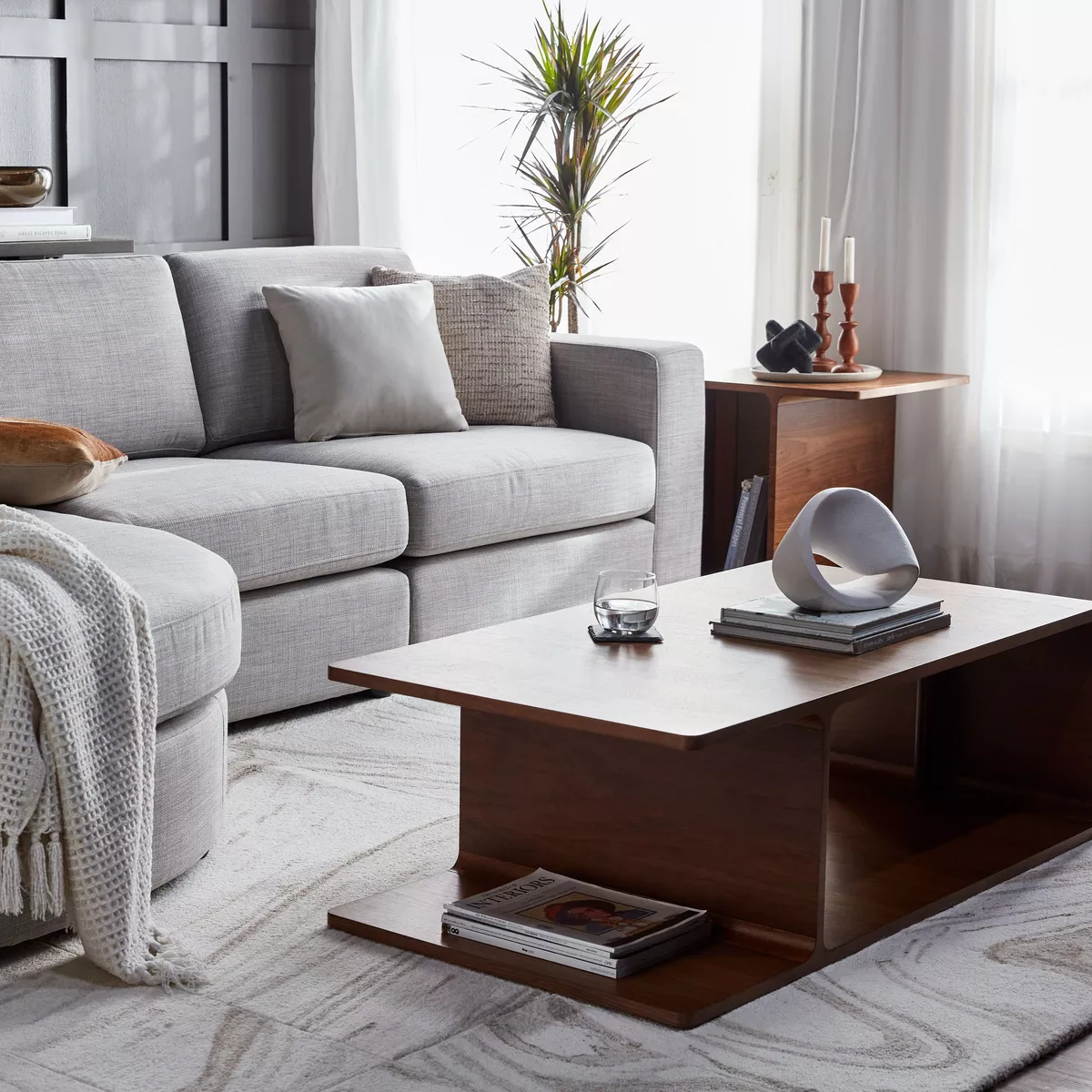 With its design, it's a modern addition to your furniture collection, just like this coffee table. Featuring a stylish storage shelf, it's crafted from high-quality, durable materials with a veneer finish. It blends seamlessly into your décor, but avoid using harsh chemicals or abrasives for cleaning.