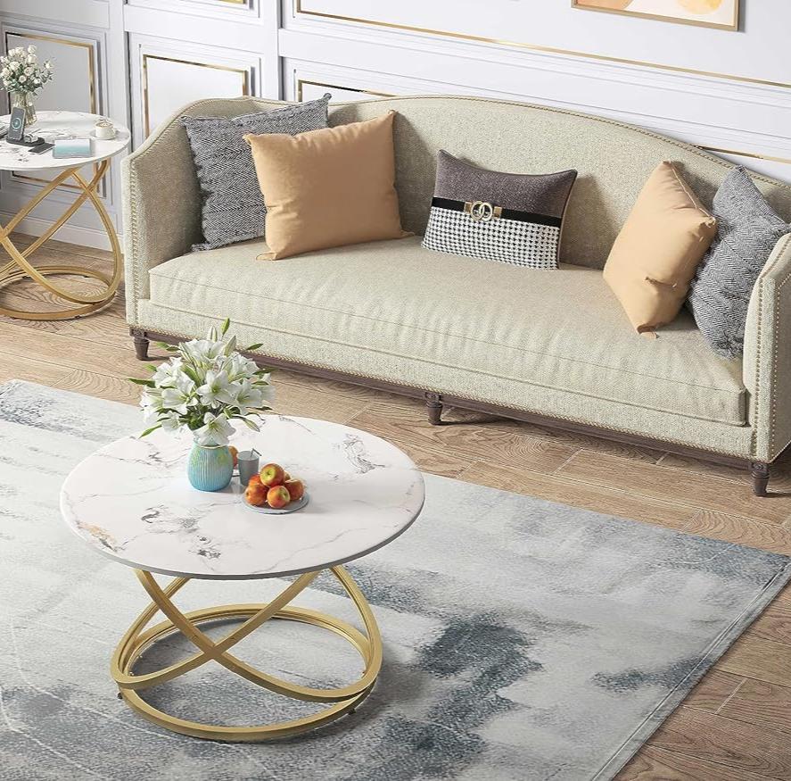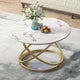 Reflect the elegance of your home décor choices with this elegant coffee table. Designed with an attractive round shape, this table is designed specifically for modern interiors and has an elegant surface. It features a high-quality marble-like surface and a metal-combination base, adding a striking beauty.