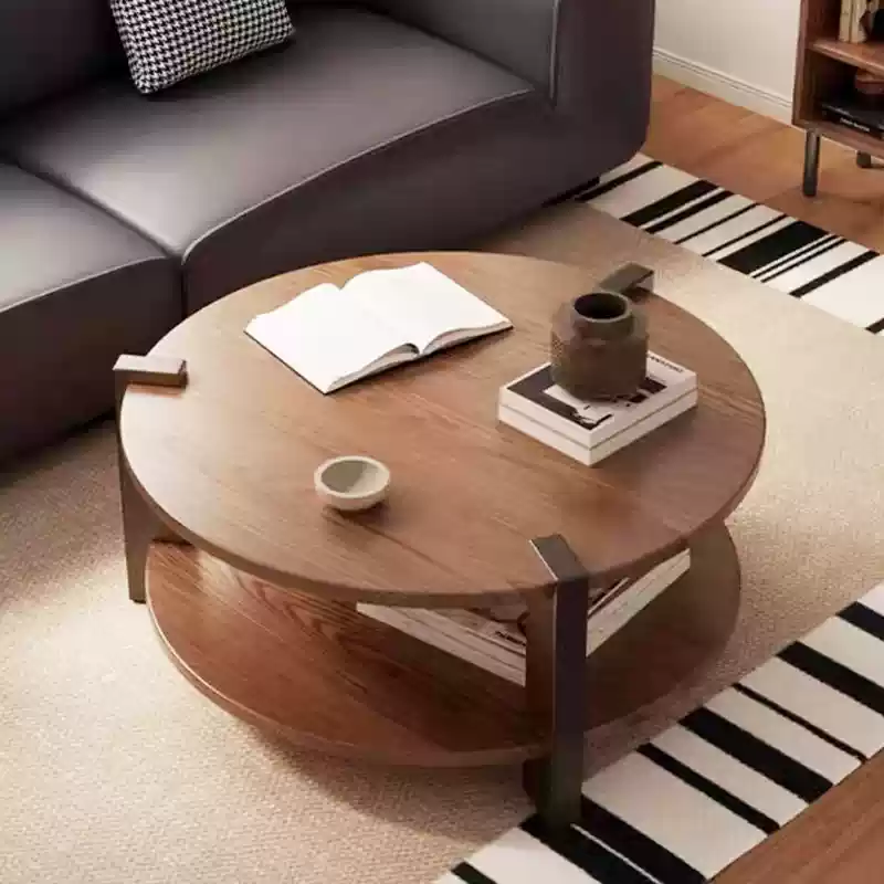 Add a touch of contemporary elegance to your living room with this meticulously crafted circular coffee table. The design combines premium natural wood for unparalleled durability and classic elegance that blends seamlessly with any interior decor. The spacious circular surface adds a warm, modern touch, while a practical lower shelf provides the perfect space for organizing books, decorations, or serving utensils.