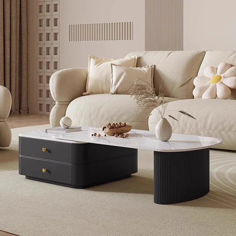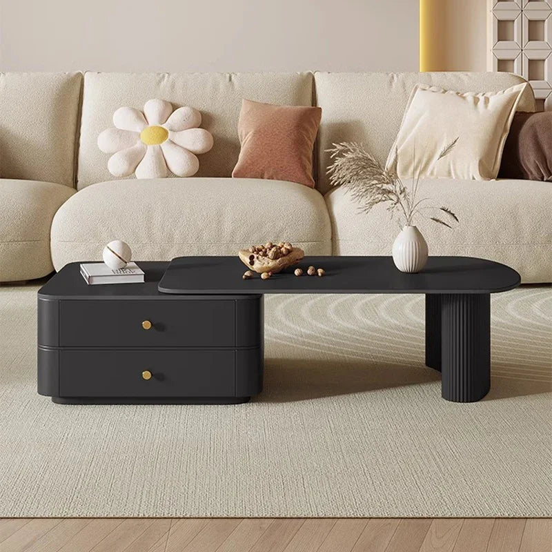This luxurious extendable coffee table is a perfect choice for a modern home. It helps you display your decor with a high-gloss finish. It is durable and has versatile surfaces, storage drawers, and handles, adding a touch of elegance to any room.