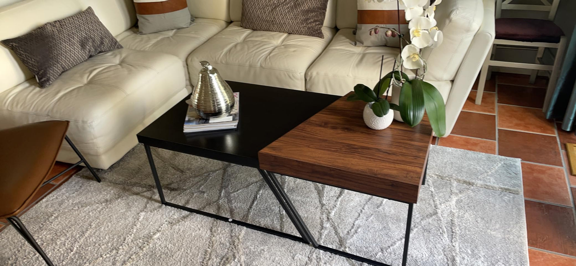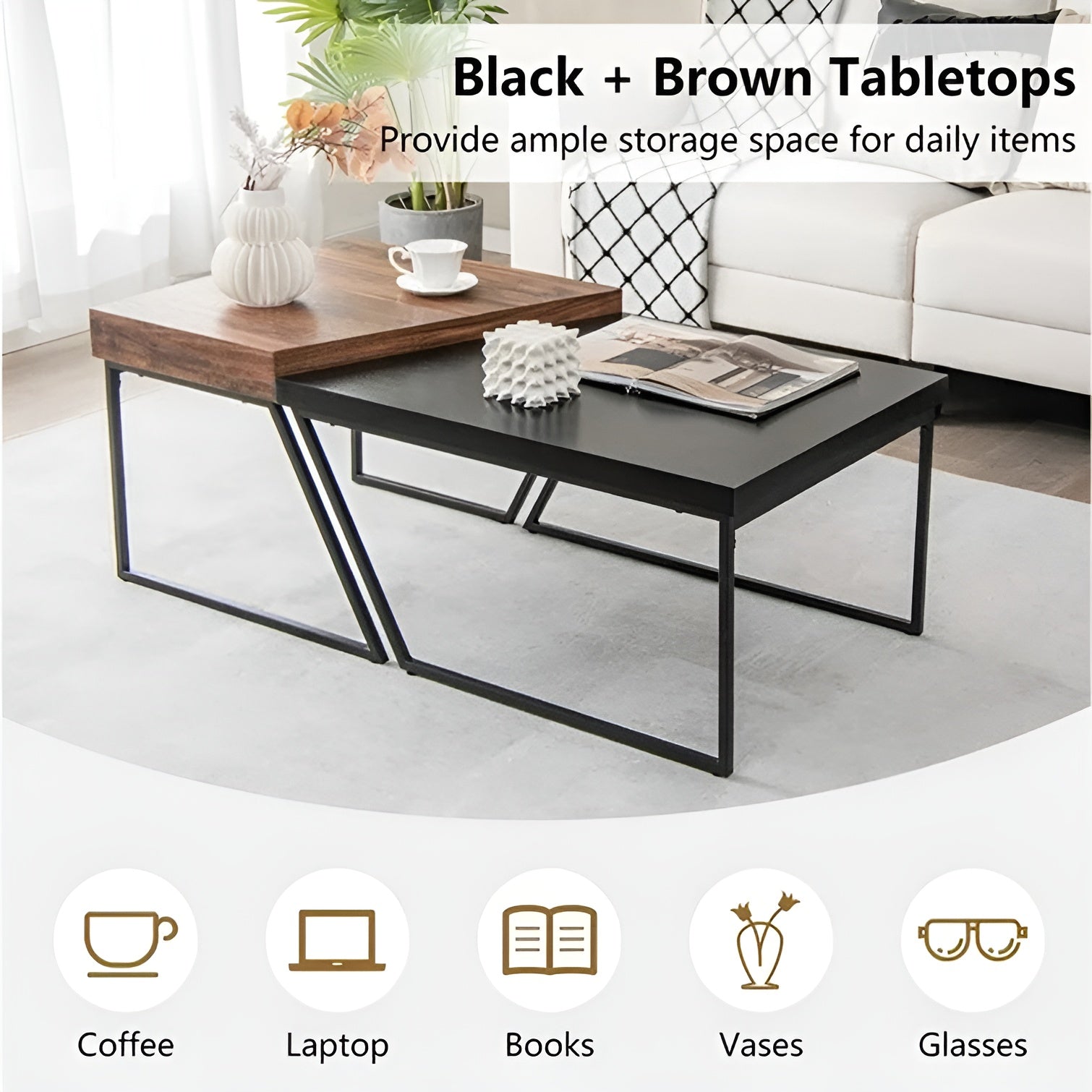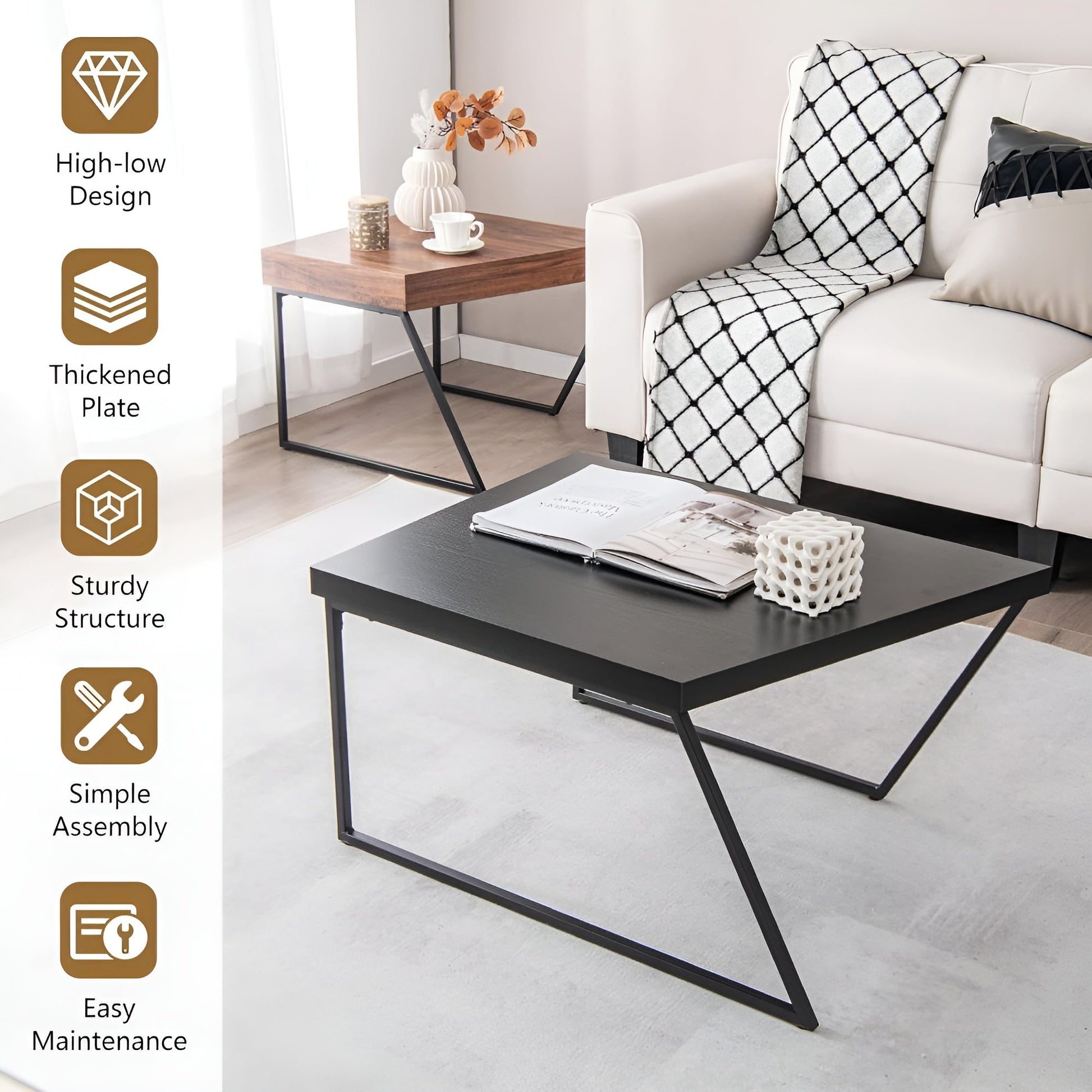 The coffee table is a very important piece of furniture in any home to place your favorite decorative pieces on it and complete the elegance of your home. Get a coffee table with a distinctive design of two pieces that can be used together or separately. High-quality materials and a distinctive and unique design. It is manufactured from high-quality metal legs and a distinctive and high-quality wooden surface.