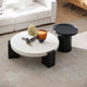 This modern round coffee table features a wide, circular top in a soft cream color, with sturdy black legs that give it exceptional stability and elegance. The table is made of the finest high-quality wood, making it a distinctive and elegant addition. It measures 35 cm in height and 75 cm in width. This table will add a touch of beauty to your home.