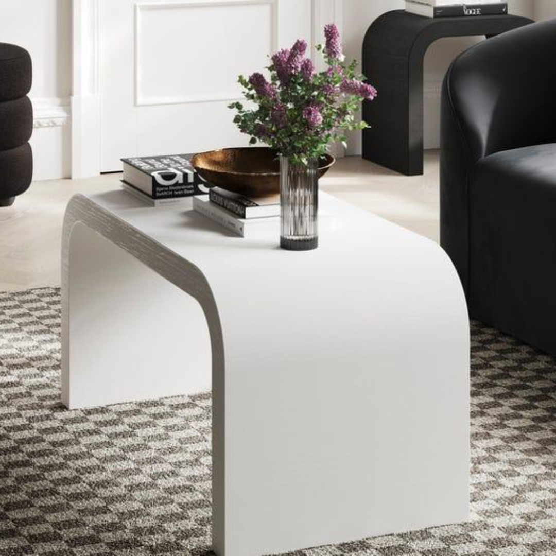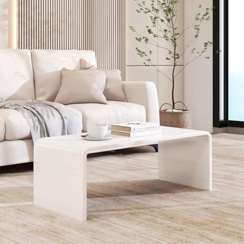 This simple, modern, and elegant living room coffee table blends perfectly with a wide range of decor styles. The smooth, clear surface makes it easy to clean with a damp cloth. Versatile for a formal living room, family room, study, or office space. One-piece construction. Smooth, rounded corners are safe enough for children.