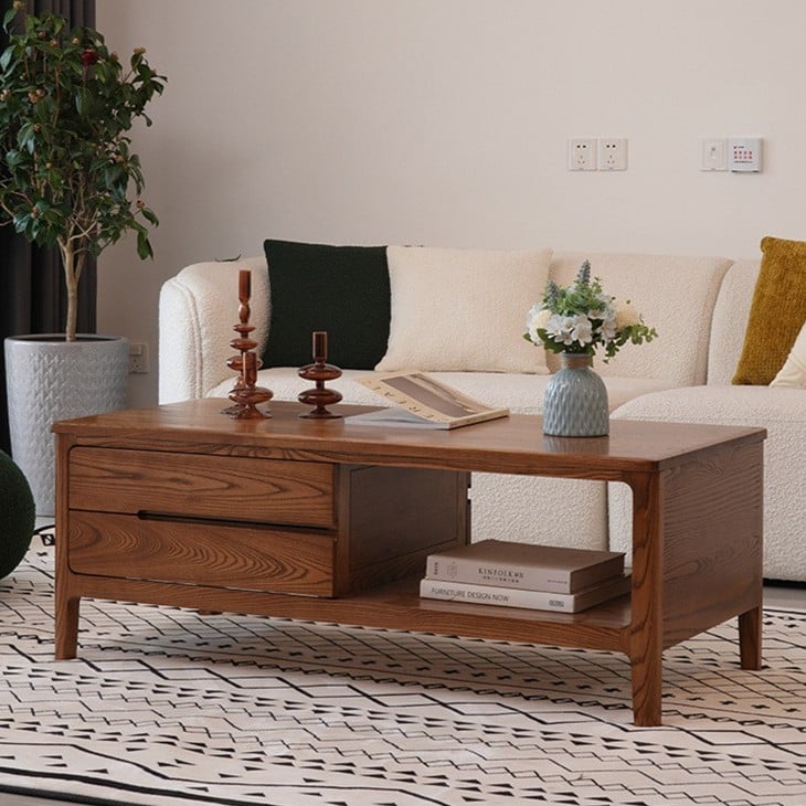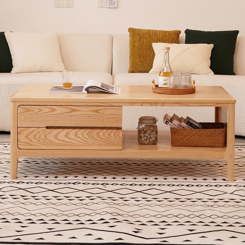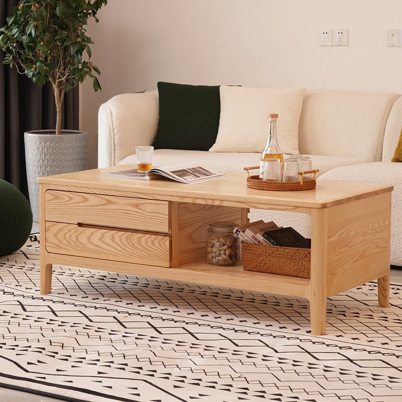 A coffee table that combines practicality and beauty, perfect for organizing your living room. Its modern design features drawers and open storage space for storing books or accessories. Made of durable wood with a natural finish that adds warmth. Available in two elegant colors: light wood and dark wood, it's a perfect choice for any home that values order and elegance.