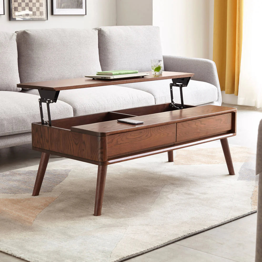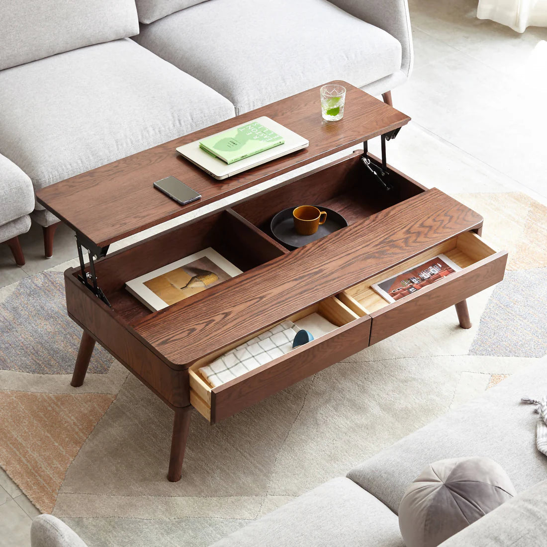 اكتشف الجيل الجديد من طاولات القهوة مع هذه القطعة الذكية متعددة الوظائف التي تلبي جميع احتياجات الحياة العصرية. تتميز الطاولة بتصميم مستطيل أنيق من خشب الداكن ، مما يضفي عليها أناقة كلاسيكية خالدة. تكمن القوة الحقيقية لهذه الطاولة في آليتها المخفية: حيث يرتفع الجزء العلوي بكل سهولة ليتحول إلى سطح عمل أو طاولة طعام مؤقتة ومريحة، بينما يكشف عن مساحة تخزين عميقة ومقسمة بشكل مثالي لتنظيم بطانياتك، الكتب، أو أجهزة التحكم. بالإضافة إلى ذلك، تحتوي الطاولة على درجين جانبيين واسعين يوفران تخزيناً إضافياً. إنها الخيار الأمثل للمساحات الصغيرة والمتوسطة، حيث تجمع بين الجمال الخشبي الطبيعي والتنظيم الذكي والمرونة الوظيفية التي لا غنى عنها.