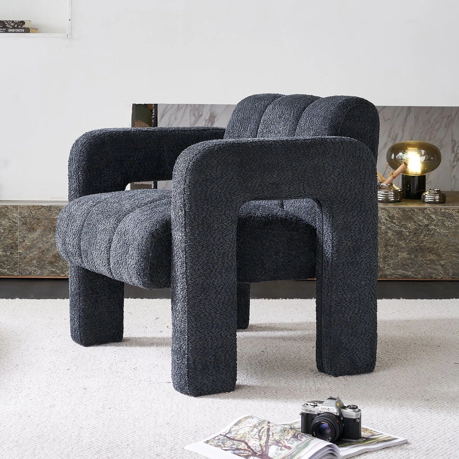 This luxurious chair features soft bouclé fabric and a stunning geometric design that adds a touch of elegance and beauty to any room. It was carefully selected using the finest materials to provide maximum comfort and durability. It blends easily with various decor styles.