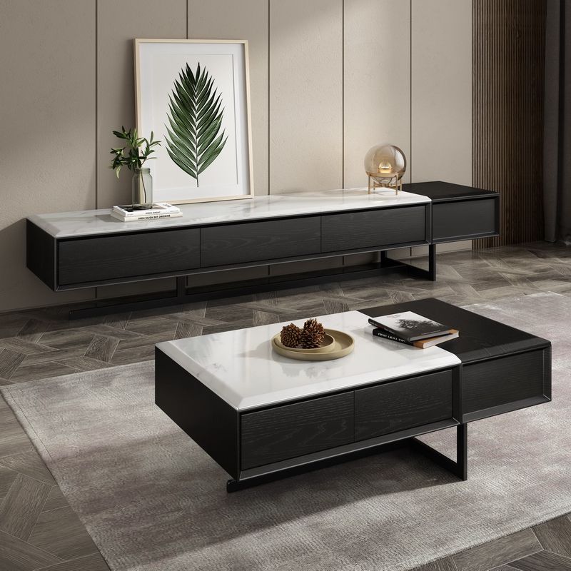 A modern coffee table with storage and drawers, available in black and white. Made from high-quality natural wood, it combines elegance and functionality, making it ideal for organizing your space in a stylish and contemporary way. .