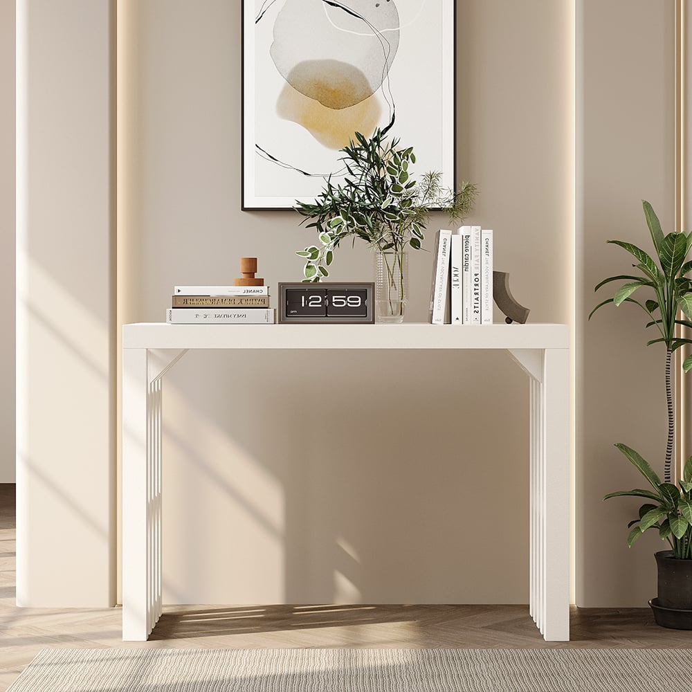 Take a look at this simple, clean-lined console table, which adds a modern touch to any décor in your home. Place it in your foyer, hallway, or behind your living room sofa with decorative items, plants, and your favorite family photos to add a unique touch. High-quality materials are used in this console table, creating a natural atmosphere. The white console table features a waterfall design, making it more modern and perfectly in line with your room's style and decor.