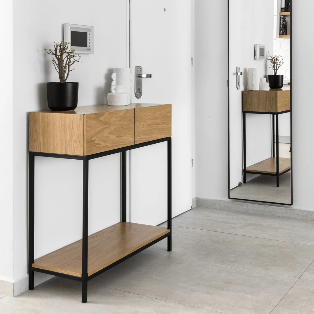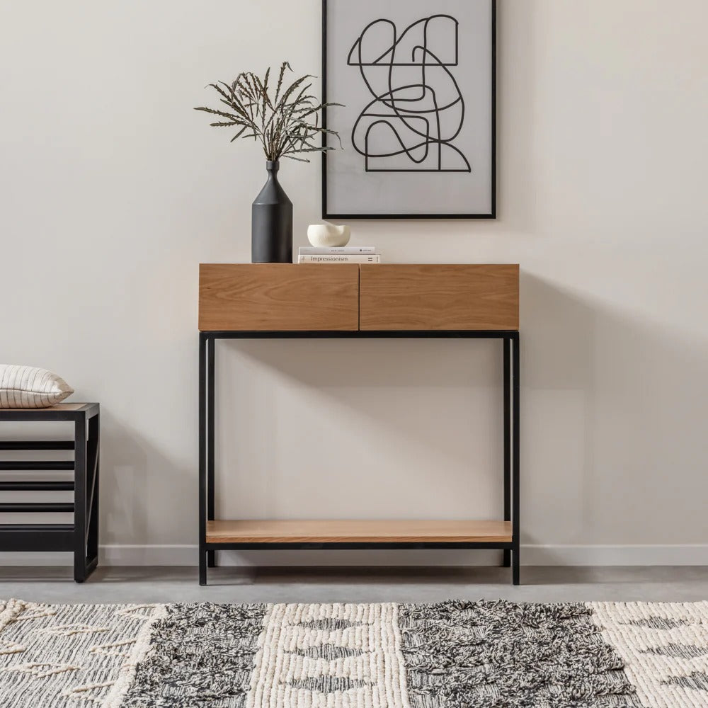 Add a touch of sophistication to your home with this distinctive modern console. Combining the beauty of natural wood and metal, this console gives it a modern and elegant look. Use it in the entryway to store keys and wallets, or in the living room to display your favorite decorative pieces.
