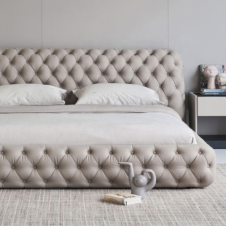 سرير بتصميم مبتكر يجسد الفخامة والراحة في آن واحد. مصنوع من مواد عالية الجودة، يمنحك شعورًا ناعمًا ومريحًا عند الاستلقاء عليه. يتميز بتفاصيل أنيقة وجذابة، مما يجعله نقطة جذب في أي غرفة نوم