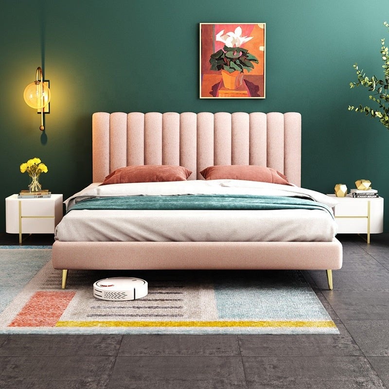 جدّد أثاث غرفة نومك بالحصول على هذا السرير كوين الأنيق والحديث. مصمم بطابع عصري ومقاس مناسب، يتمتع بتنجيد قماش فاخر وقوائم معدنية، كما يأتي بلونين مميزة وهي الاخضر او .الوردي، ويتمتع بخامات مخملية مريحة للغاية