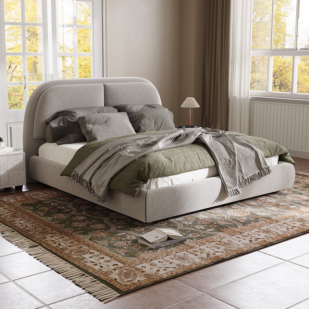يتميز السرير بلوح أمامي فخم بتصميم منحني وإسفنج عالي المرونة لدعم مريح. قاعدة السرير المقعرة المغطاة بألياف ثلاثية الأبعاد تمنع حركة المرتبة وتزيل الضوضاء. الإطار حواف مستديرة، يضمن هذا المزيج من عناصر التصميم الراحة والأمان في غرفة نومك.