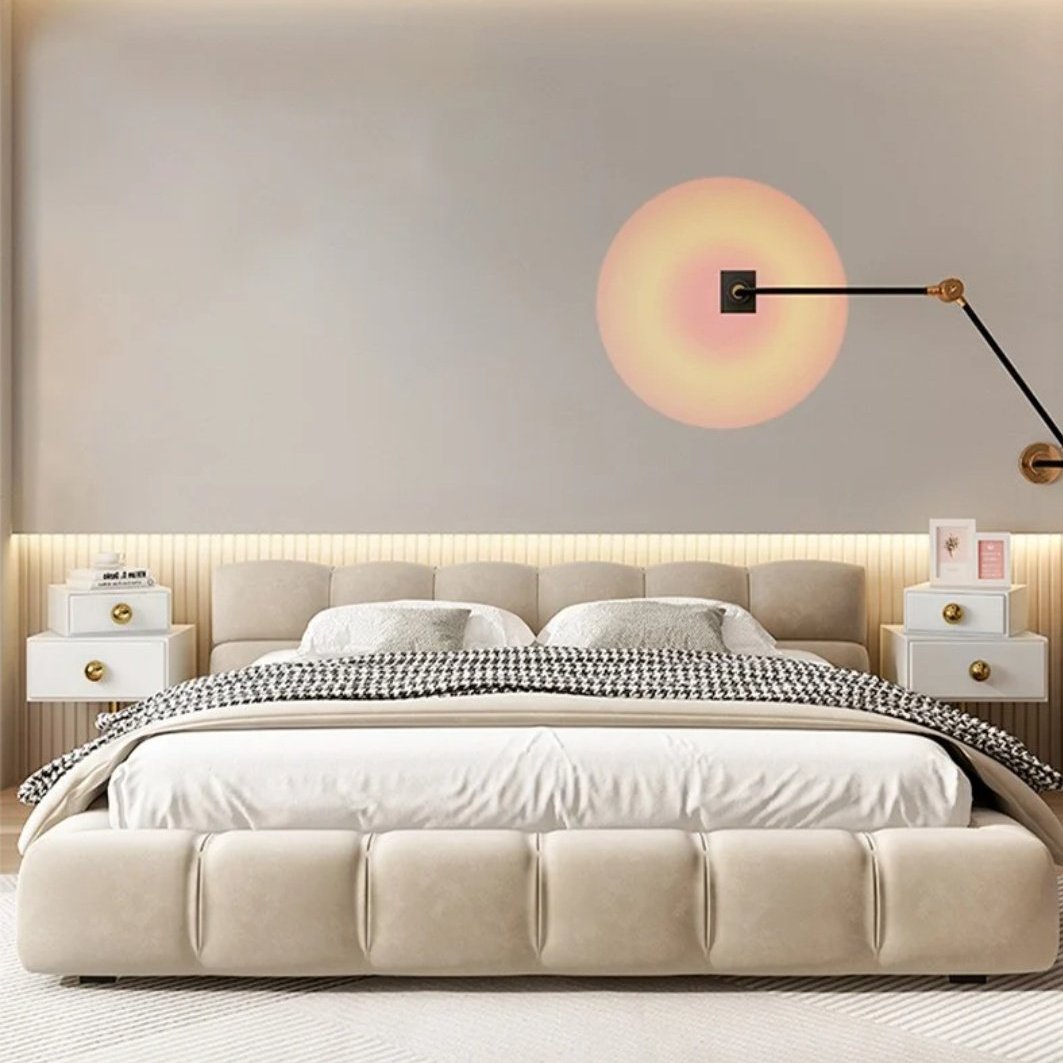 سرير بتصميم يجمع بين الفخامة والمتانة، السرير يتميز بتصميم أنيق وعصري يجمع بين الراحة والأناقة ،يتمتع بإطار مبطن بشكل فاخر ومريح دعما مثاليا للجسم أثناء النوم ،مما يجعله الخيار الأمثل لغرفة نومك.