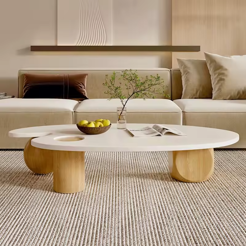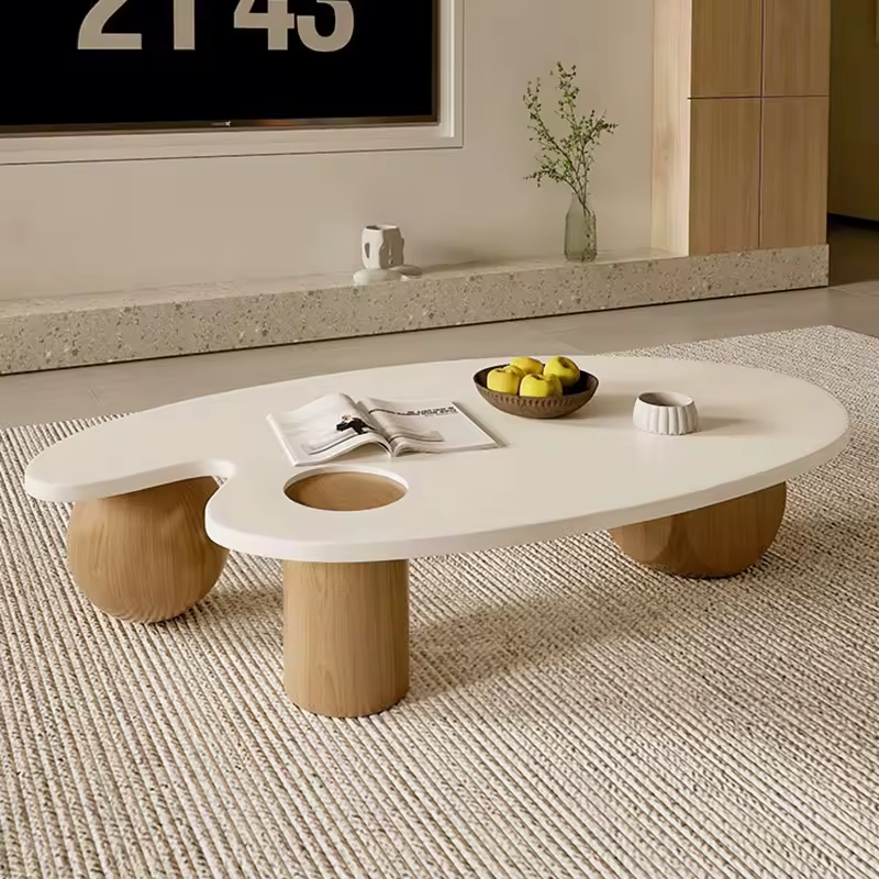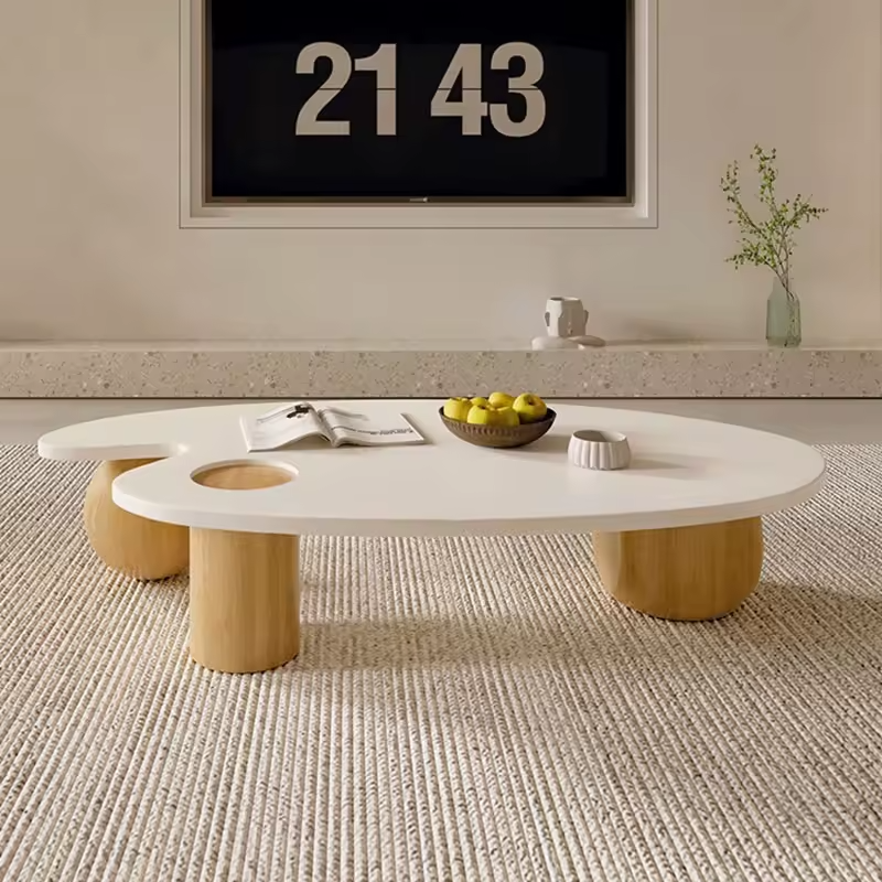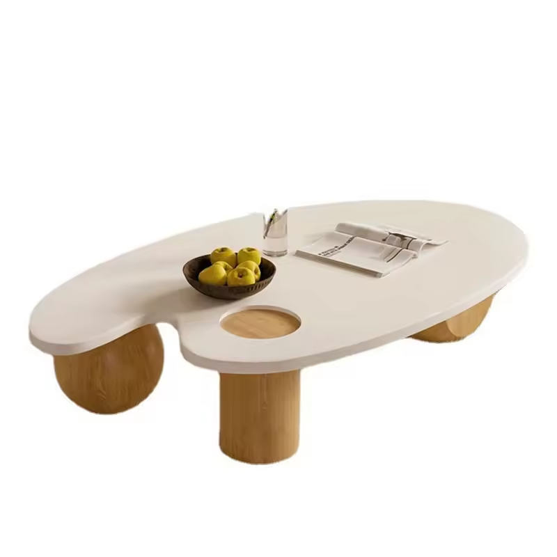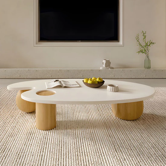 "ارفع مستوى أناقة مساحتك مع هذه الطاولة الفريدة التي تكسر كل القواعد! بتصميمها غير المتماثل، وسطحها الأبيض الأملس، وقاعدتها الخشبية ، هي ليست مجرد طاولة، بل قطعة فنية تحكي قصة الأناقة الحديثة. يوفر تصميمها مساحة وظيفية واسعة، مع فتحة دائرية مدمجة تضيف لمسة من الإبداع والعملية. أضف هذه الطاولة إلى غرفة معيشتك، واستمتع بتجربة فريدة من الجمال والابتكار!"