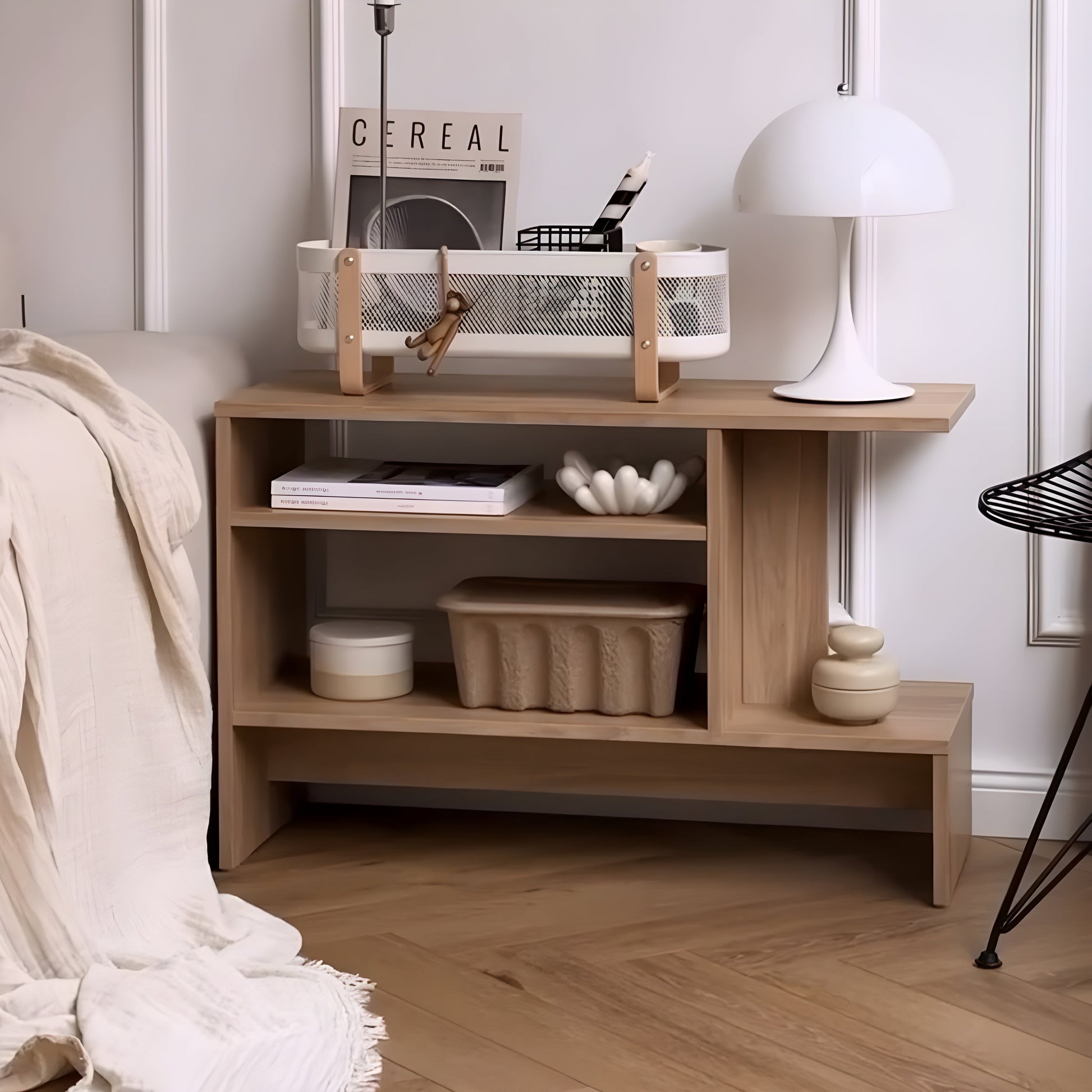 "هذه ليست مجرد طاولة جانبية، بل هي حل ذكي وعصري لمساحتك. بتصميمها البسيط ولونها الخشبي ، توفر لك سطحًا مثاليًا لوضع مصباح، كتب، أو قطع ديكور، مع رف سفلي إضافي لمزيد من التخزين. قطعة عملية وأنيقة تضفي لمسة من التنظيم والجمال على أي ركن في منزلك."