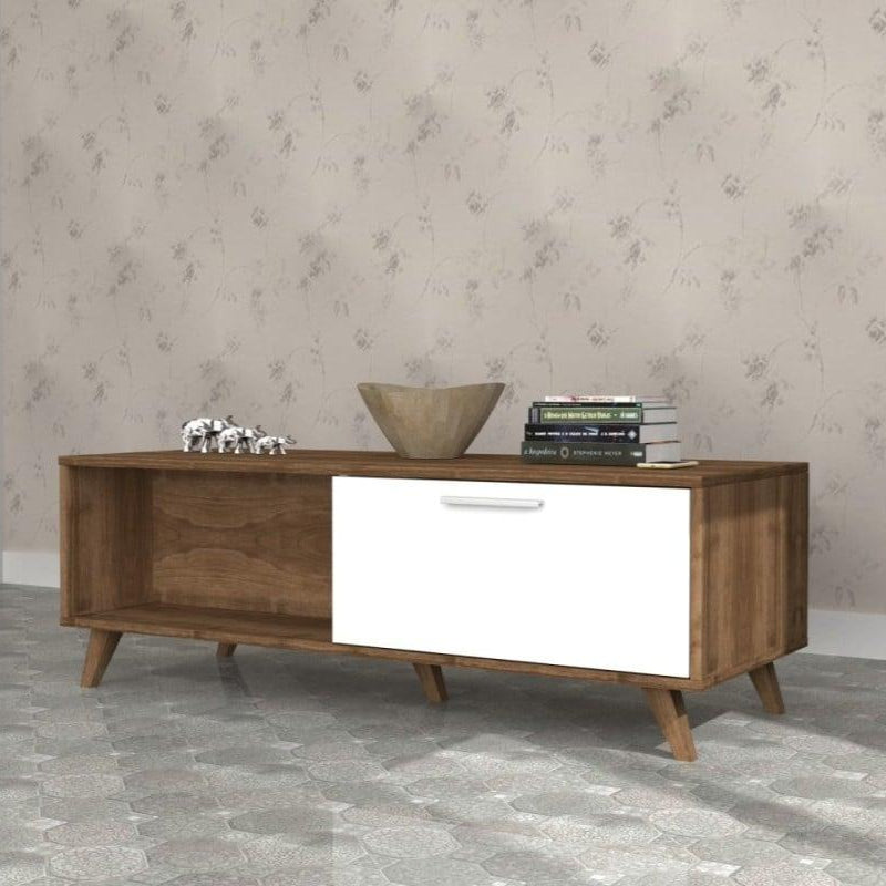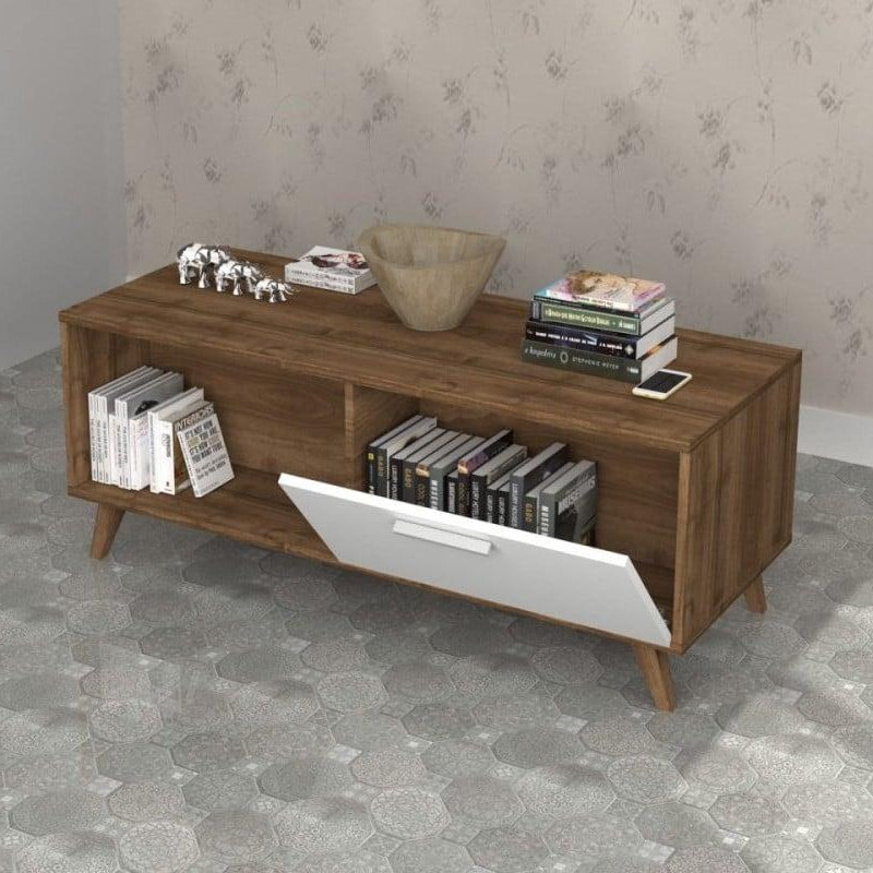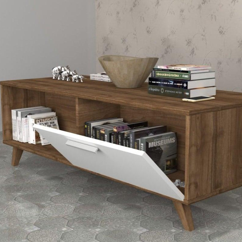 "جدّد ديكور مساحتك مع هذه الطاولة التي تجمع بين الجمال والبساطة. تصميمها الحديث يمزج بين الخشب بلونه الطبيعي واللمسات البيضاء الأنيقة، مما يمنحها مظهرًا عصريًا يتناسب مع أي ديكور. الأرجل الخشبية الرفيعة تمنحها مظهرًا خفيفًا وأنيقًا، مما يجعلها قطعة مثالية لغرفة المعيشة."