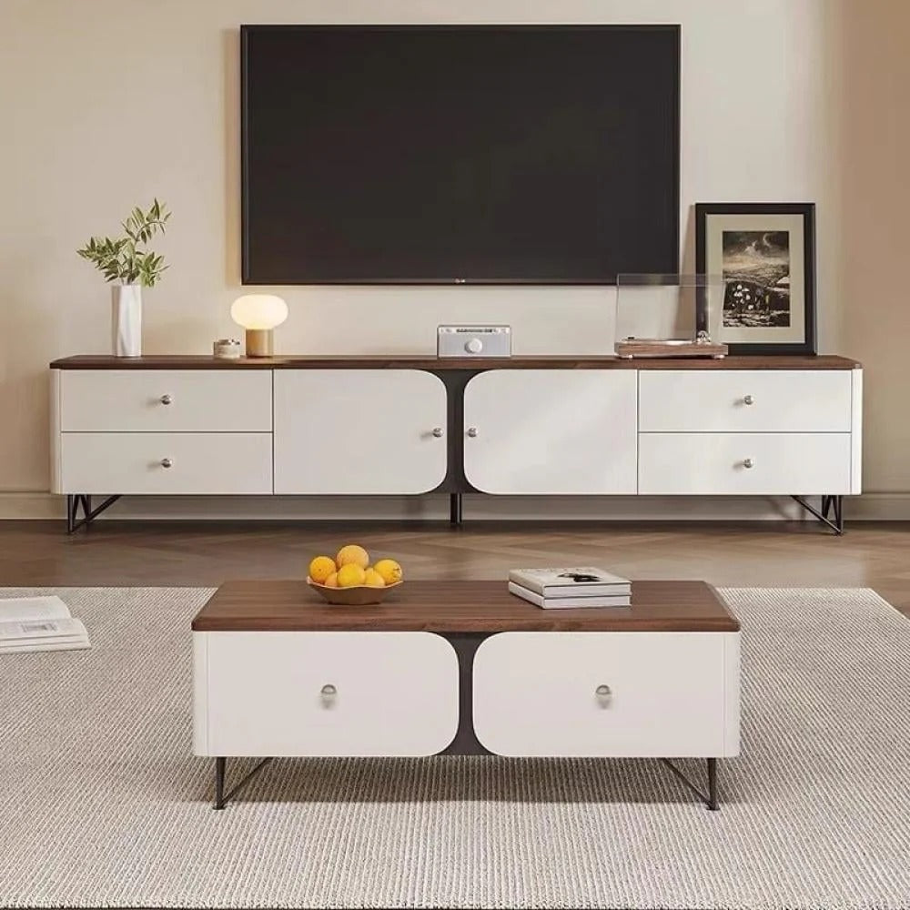 طاولة تلفاز بتصميم عصري يجمع بين الأناقة والعملية، تضيف لمسة راقية لأي مساحة معيشة. مصممة بعناية لتوفير مساحة مثالية لوضع التلفاز وتنظيم الأجهزة والإكسسوارات، مع تشطيب أنيق وخطوط هادئة تناسب مختلف أنماط الديكور. اختيار عملي يوازن بين الشكل الجذاب والاستخدام اليومي المريح.