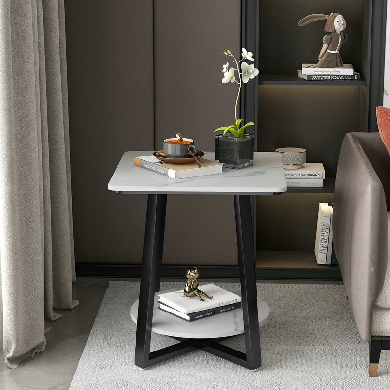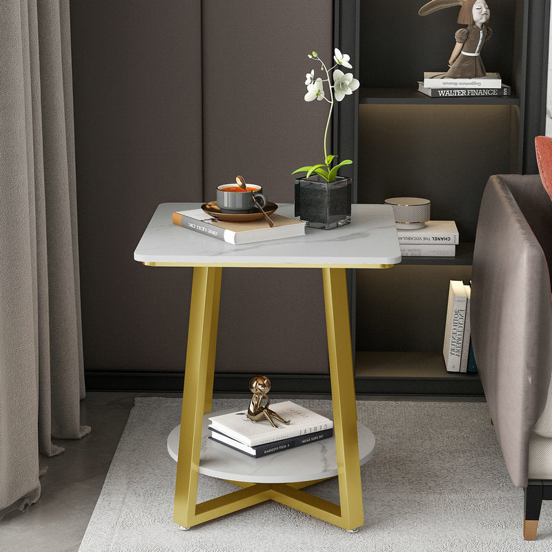 "طاولة جانبية أنيقة تجمع بين المعدن وبديل الرخام بتصميم عصري يناسب المساحات بجانب الكنبة أو السرير. تتميز بسطح رخامي فاخر يمنحها مظهراً راقياً مع هيكل معدني متين يضمن الثبات والمتانة. مثالية لوضع المشروبات، الكتب، أو المصابيح، مما يضيف لمسة من الفخامة والعملية إلى ديكور منزلك."