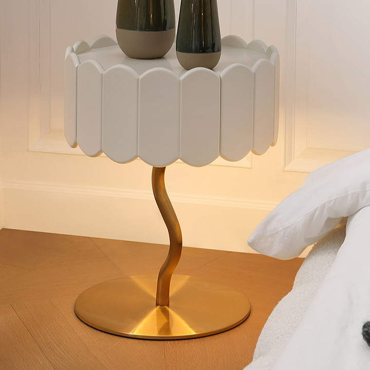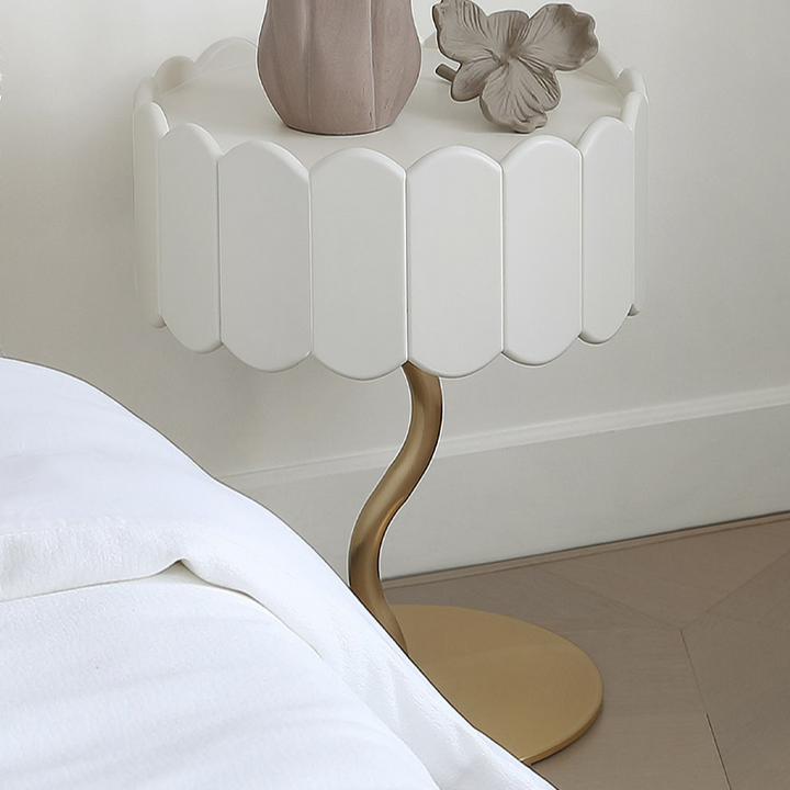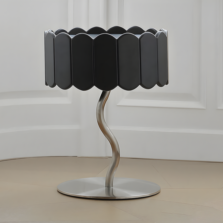 "ارفع مستوى أناقة مساحتك مع هذه الطاولة الجانبية الفريدة! بتصميمها المبتكر الذي يشبه الزهرة، وسطحها المتموج، وقاعدتها النحاسية اللامعة، هي ليست مجردطاولة، بل قطعة فنية تضفي لمسة من الرقي على أي ركن في منزلك تعتبر هذه الطاولة مثالية كقطعة بجانب السرير أو الأريكة، حيث يمكنك وضع مصباح أنيق، كتابك المفضل، أو كوب قهوتك. اجعل منزلك مكانًا يعكس ذوقك الرفيع، واستثمر في قطعة تجمع بين الأناقة والجمال."