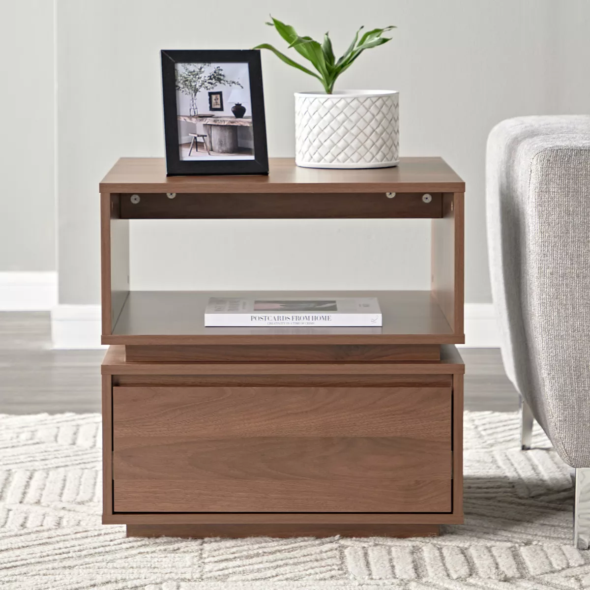بلا شك ان هذه الطاولة الجذابة ستكمل ديكور كافة المساحات والأماكن وذلك بفضل اللمسة العصرية التى تضيف لشكلها , كما هى أيضا قطعة من الديكور المعاصر الذي يمزج بين الفن الهندسى الحديث والوظيفة , تم تصميم هذه الطاولة مع أخذ التصميمات الداخلية المتعددة حيث تم تصميم المساحات الداخلية للتخزين لتلبية كافة أحتياجاتك حيث يوفر الدرج السفلى مساحة واسعة للحفاظ الأساسيات منظمة وفى متناول اليد بينما يوفر الرف المفتوح مساحة تخزين او عرض إضافية .
