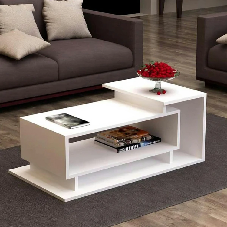 ارتقِ بديكور غرفة معيشتك مع هذه الطاولة العصرية ذات التصميم المبتكر. خطوطها الهندسية النظيفة ولونها الأبيض الناصع تمنحها مظهرًا حديثًا وجذابًا. إنها ليست مجرد طاولة قهوة، بل قطعة فنية تضيف الأناقة والجمال إلى مساحتك، مع توفير أماكن تخزين ذكية لتبقى أغراضك منظمة وفي متناول اليد.
