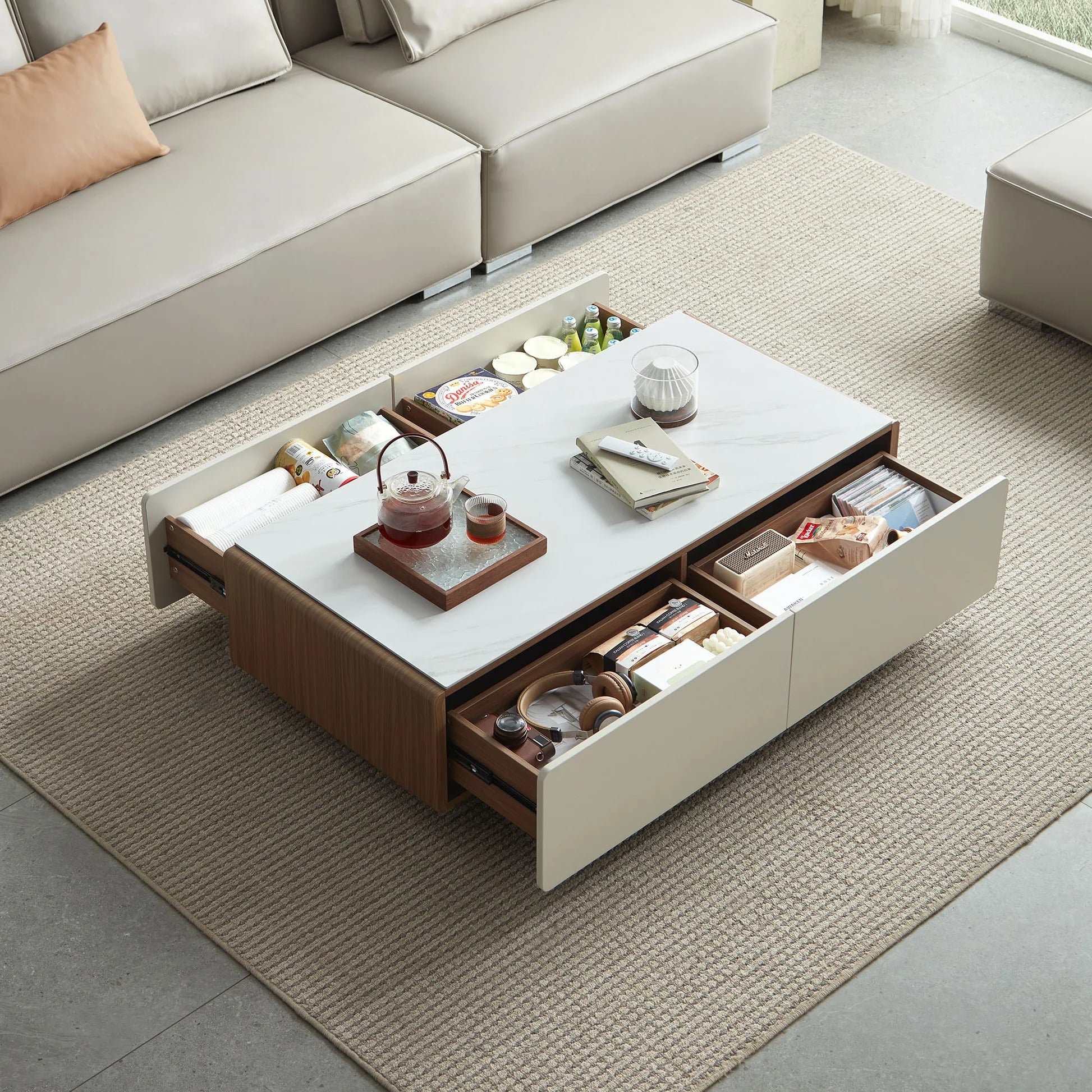 ارفع مستوى أناقة مساحتك مع هذه الطاولة الفريدة التي تكسر كل القواعد! بتصميمها الذي يجمع بين السطح الرخامي الأبيض الفاخر والخشب الداكن، هي قطعة مركزية تضفي طابعًا عصريًا فريدًا على أي غرفة معيشة. تتميز الطاولة بشكلها الهندسي المميز الذي يجمع بين الجمال والعملية. اجعل منزلك يتحدث عن ذوقك الرفيع، واستثمر في قطعة تجمع بين الفخامة والوظيفة بذكاء!