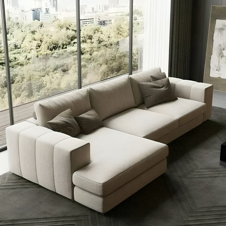 تعتبر أريكة زاوية لغرفة المعيشة اختيارًا أنيقًا لمنزلك. مصنوعة باستخدام إطار خشبي متين من أجل القوة والثبات، وتوفر الخداديات عالية الكثافة راحة إضافية بينما الخطوط المطرزة الجانبية تعزز من مضهرها وفخامتها . ويمكن استخدامها للاسترخاء لساعات إضافية