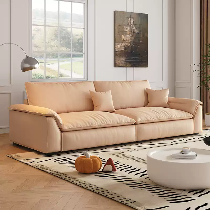أريكة العصرية الحديثة الفاخرة التي تتميز بلون ( البيج - الرمادي - الوردي)، والمقاسات المثالية (العرض 210 سم - العمق 100-120 سم - الارتفاع 85سم)، والخامات العالية الجودة، تعتبر اختيارًا مثاليًا لأولئك الذين يبحثون عن أثاث فاخر وعصري يضفي لمسة راقية وأنيقة على منزلهم أو مكتبهم.