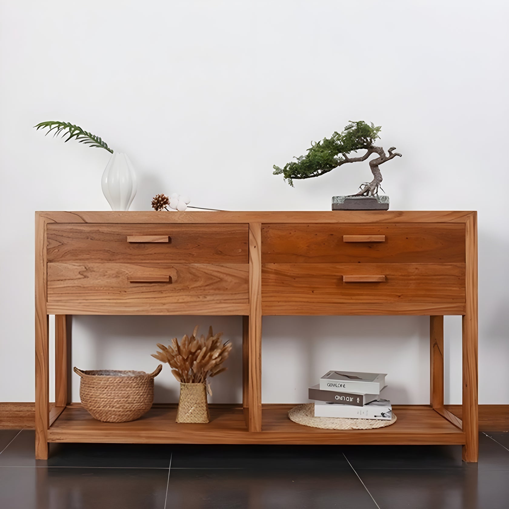 قدّم لمدخل منزلك أو غرفة معيشتك قطعة فنية لا تُنسى. هذا الكونسول الخشبي الأصيل ليس مجرد طاولة، بل هو بيان عن الذوق الرفيع والحرفية المتقنة. يتميز بتصميم يجمع بين الأناقة والعملية أربعة أدراج مخفية لتنظيم أغراضك اليومية بذكاء. رف سفلي مفتوح مثالي لعرض الديكور والكتب. قطعة أساسية تُضفي الهدوء والرقي على المدخل أو غرفة المعيشة.
