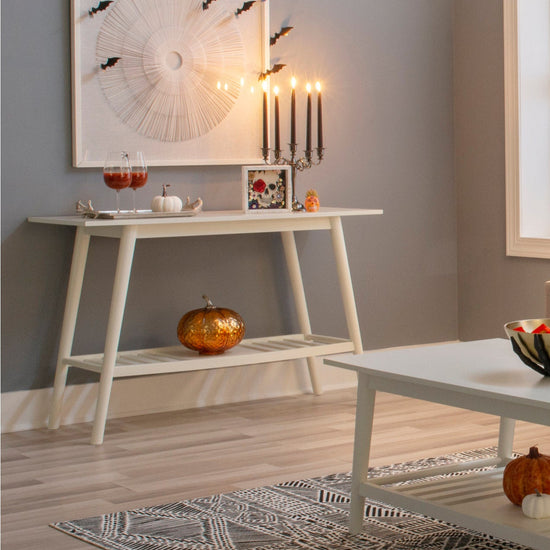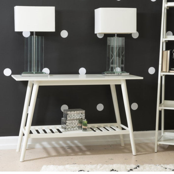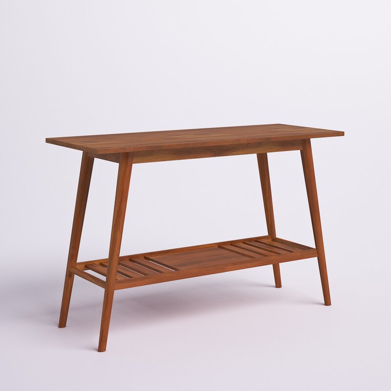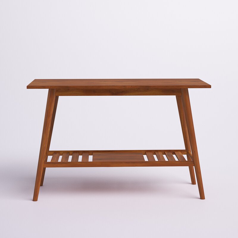 كونسول خشبية أنيقة بتصميم عصري وبسيط، مثالية للاستخدام في المنزل أو المكتب. مصنوعة من خشب متين عالي الجودة، مما يمنحها مظهرًا دافئًا وطبيعيًا. تتميز بأرجل مائلة تمنحها ثباتًا، مع رف سفلي عملي يمكن استخدامه للتخزين أو عرض الديكورات. سطح الطاولة واسع ومثالي للاستخدام المتعدد مثل الكتابة أو وضع الإكسسوارات والكتب.
