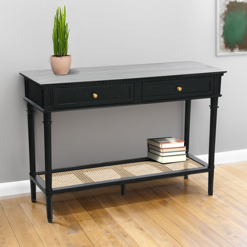 هذا الكونسول الخشبي المتين العالي الجودة يضمن تحمل الاستخدام و هو قطعة أثاث فريدة من نوعها تجمع بين الأناقة الكلاسيكية واللمسة العصرية. يحتوي علي درجين مخفيين لتخزين المفاتح، المحفظة ، أو أي أغراض صغيرة أخري الكونسول مثالي لمن يبحثون عن قطعة أثاث عملية وأنيقة لإضافة لمسة من الرقي إلى منزلهم.